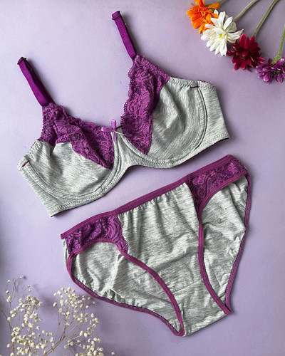 ناموجودست شورت و سوتین زنانه ملانژ گیپور ژوبین