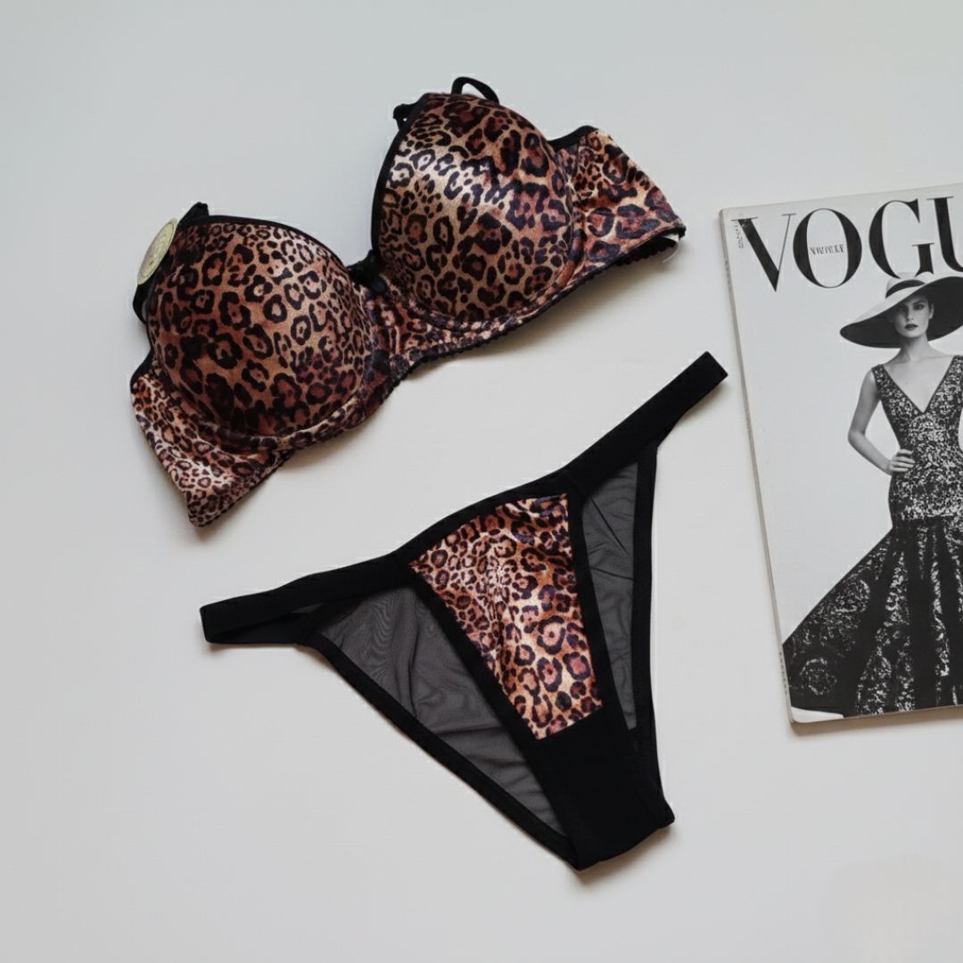 ناموجودست شورت و سوتین زنانه اسفنجی| مخملی پلنگی | نیم جک دار | برند sevil