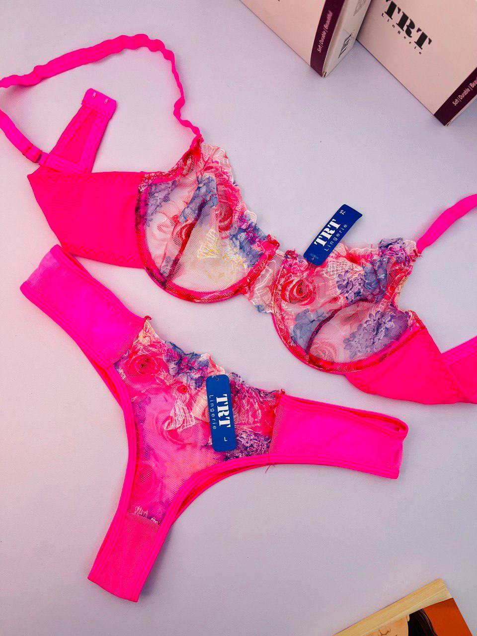 ناموجودست شورت و سوتین زنانه گلدار تیکه دوزی برند TRT - طرح ژینوس با کیفیت A++ قیمت عالی 🔥