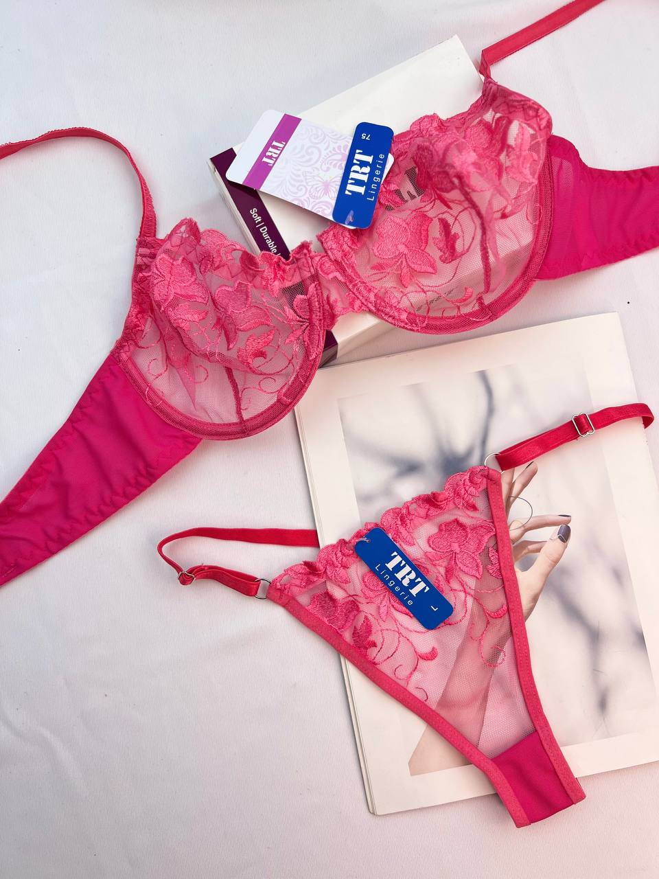 ناموجودست شورت و سوتین زنانه تور گاز TRT - طرح گلدوزی گل برجسته | طرح جدید 2026 ( کیفیت A++)