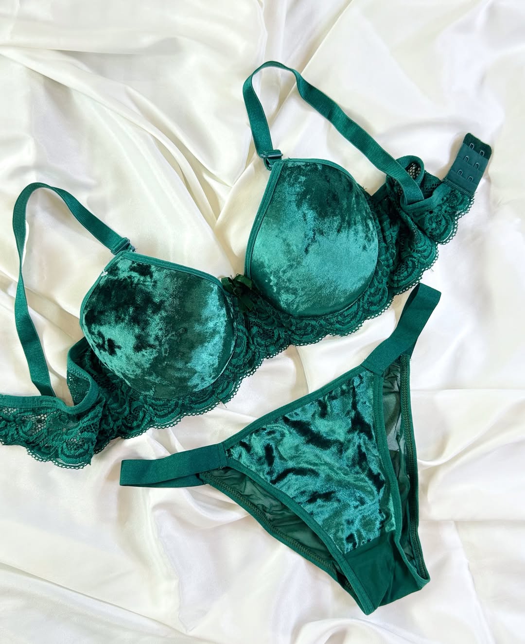 ناموجودست شورت و سوتین اسفنجی مخملی | مدل کلاسیک رنک سبز زمردی