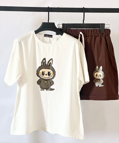 ست تیشرت و شورتک زنانه طرح فانتزی طرح لبوبو پارچه نخ پنبه با کیفیت برند NEW LOOK