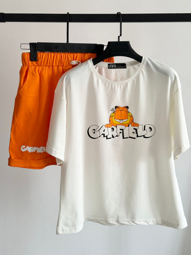 ناموجودست تیشرت و شورتک زنانه طرح فانتزی GARFIELD پارچه نخ پنبه با کیفیت برند NEW LOOK