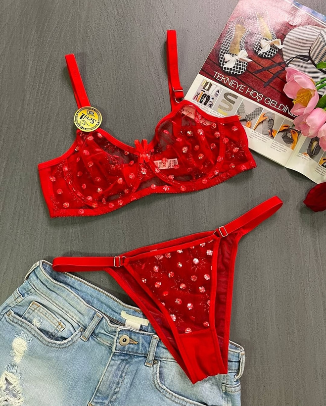 ست شورت و سوتین زنانه تور گاز فانتزی شاین دار sevil