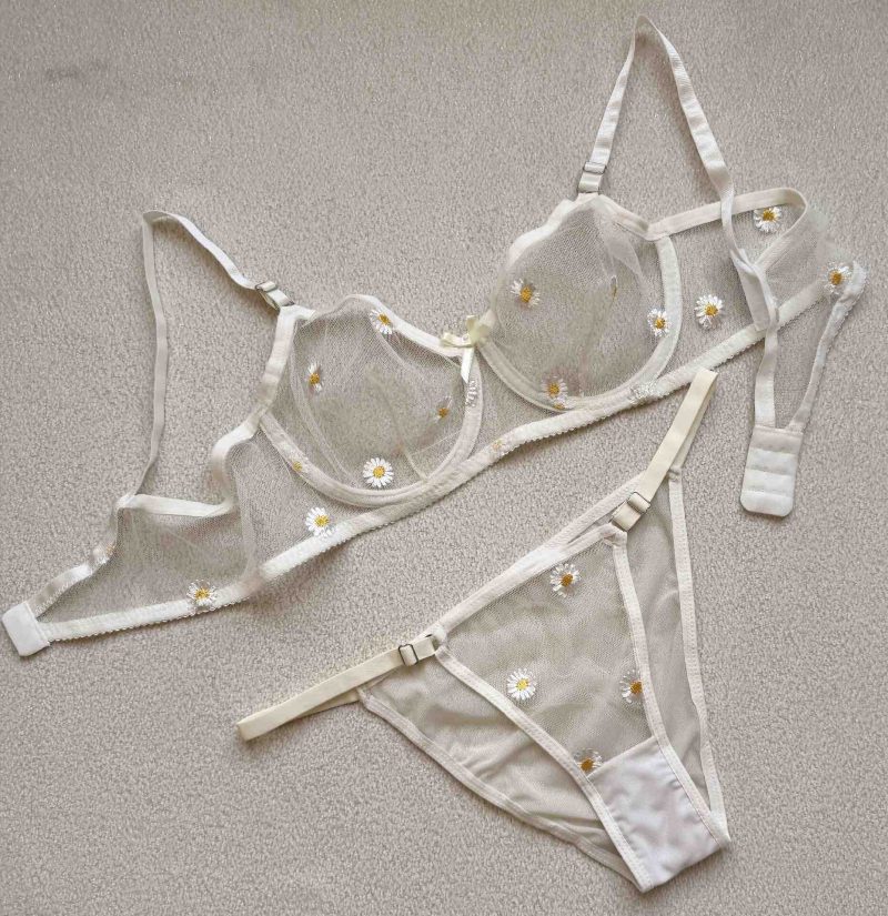 ست شورت و سوتین زنانه تور گاز طرح گل بابونه از برند محبوب sevil دارای سایز بندی استاندارد 75 تا90.