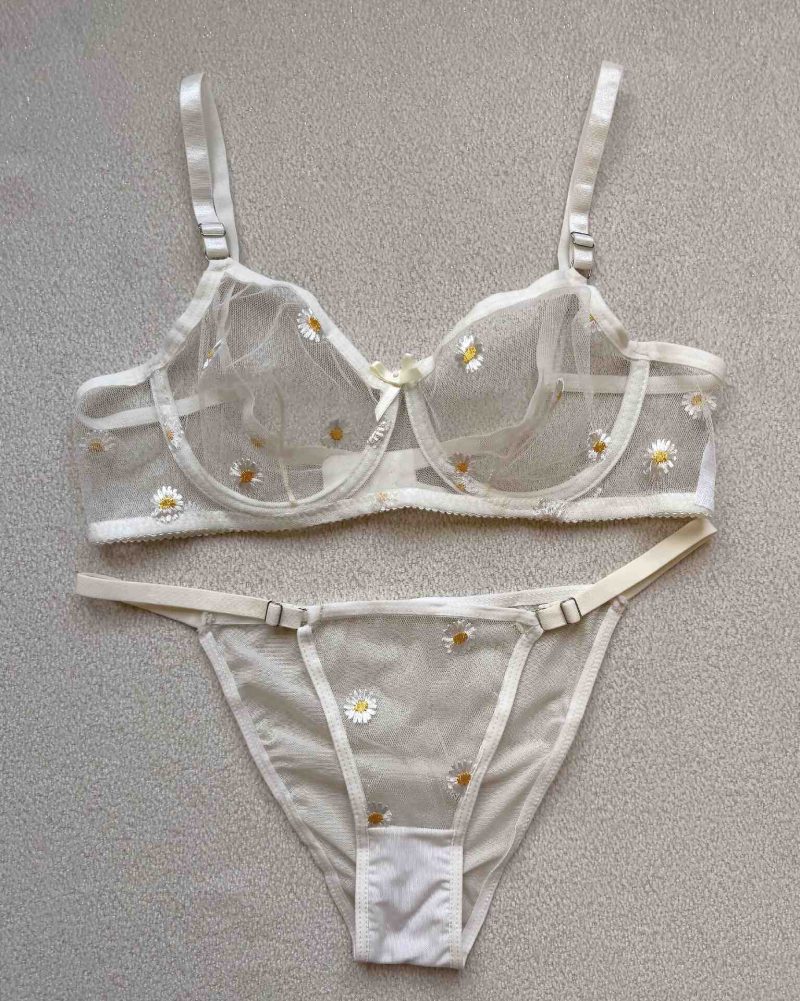 ست شورت و سوتین زنانه تور گاز طرح گل بابونه رنگ سفید نباتی برند sevil
