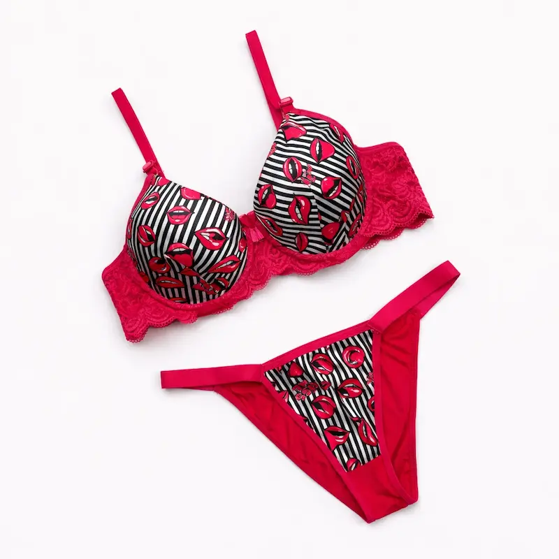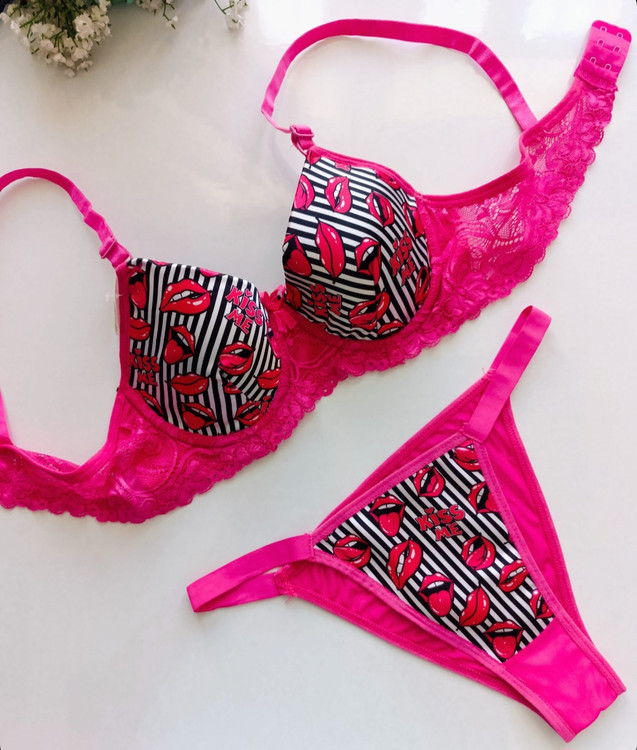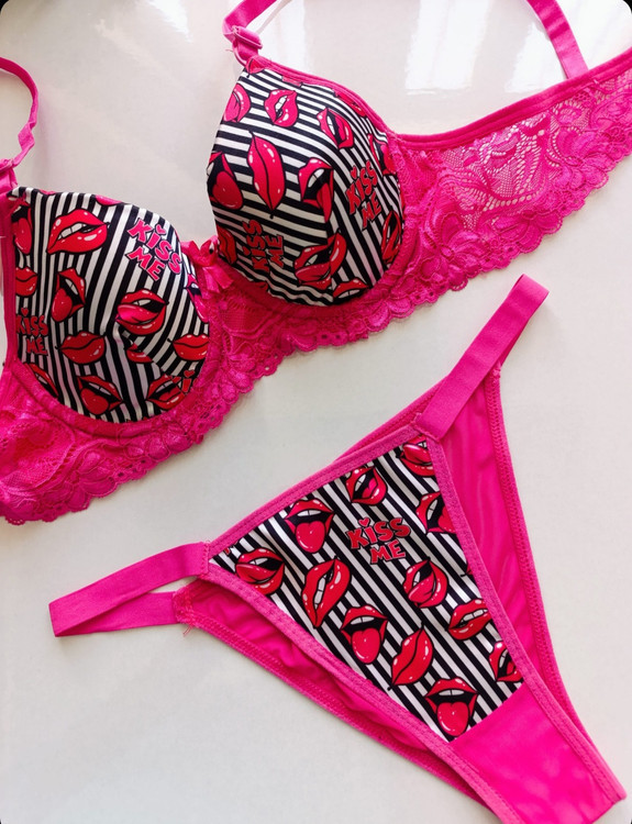 ست شورت و سوتین زنانه اسفنجی فنر دار نیم جک دار طرح فانتزی kiss 💋 از برند محبوب sevil دارای سایز 75 تا 90