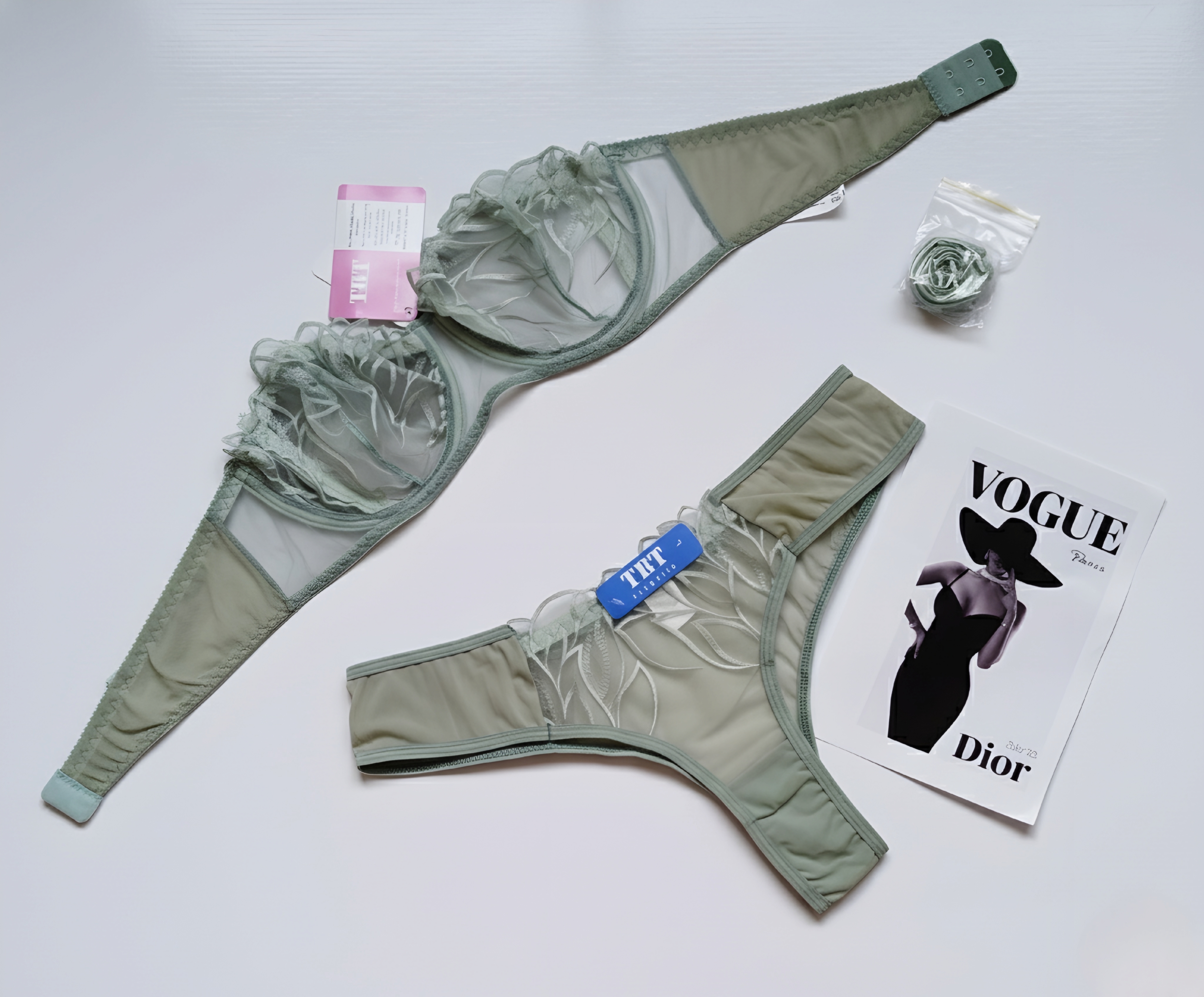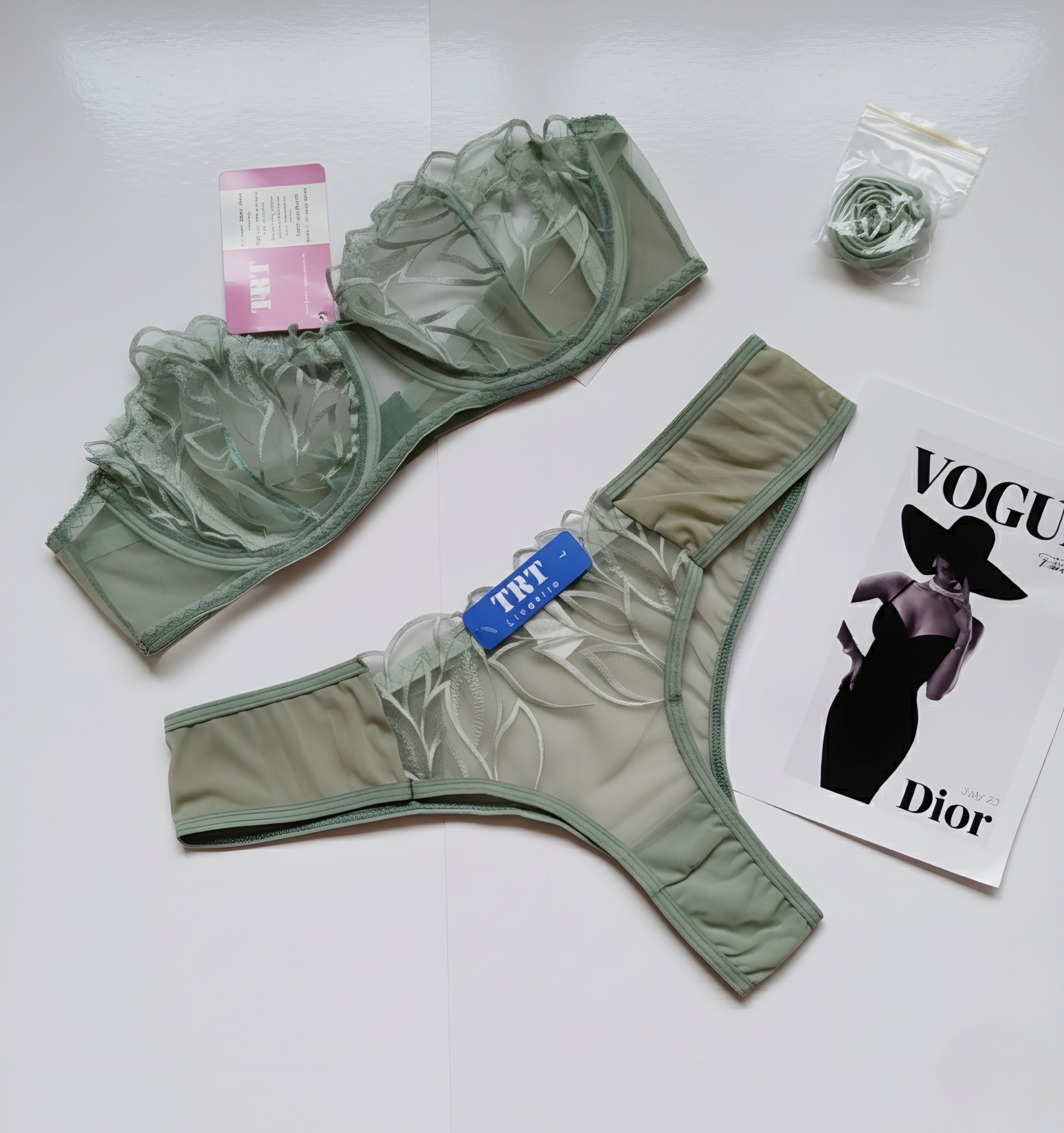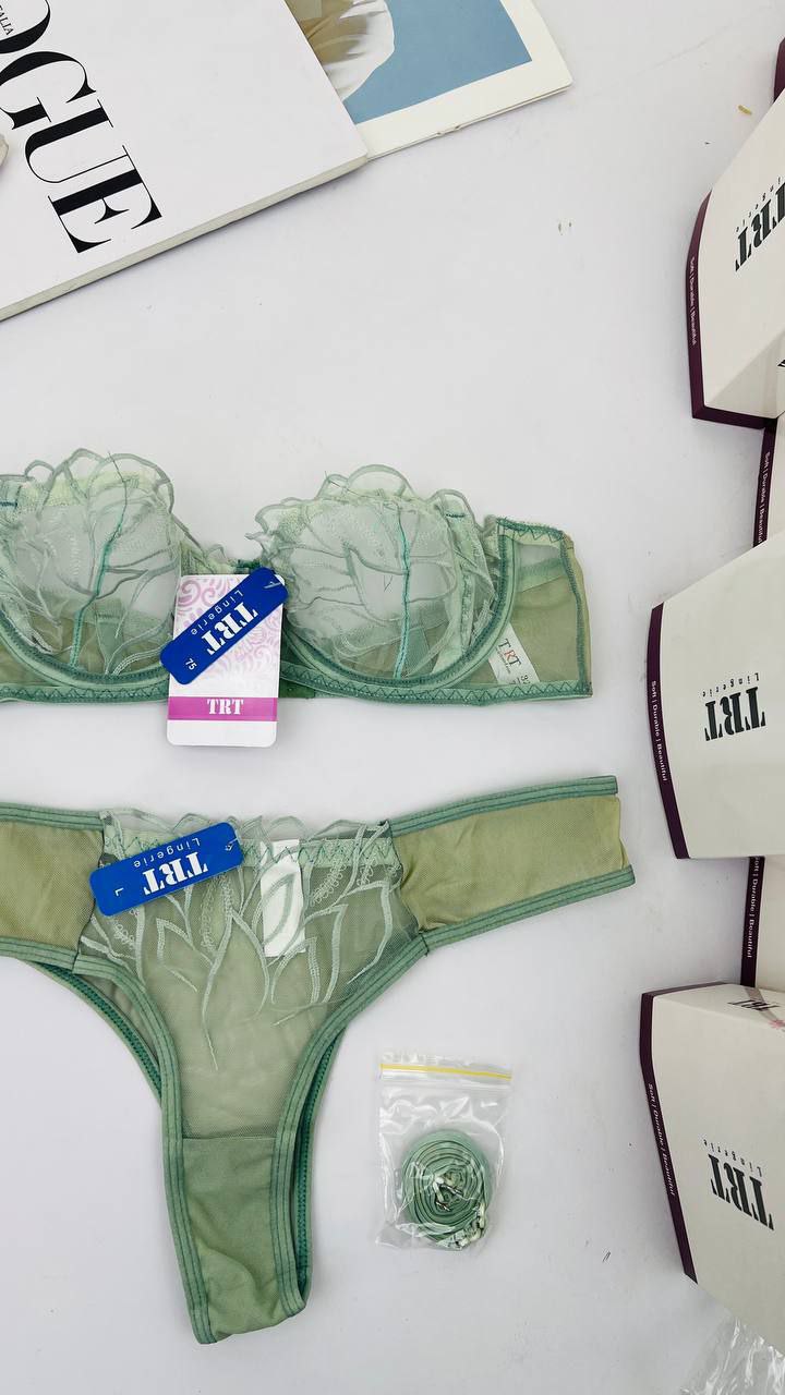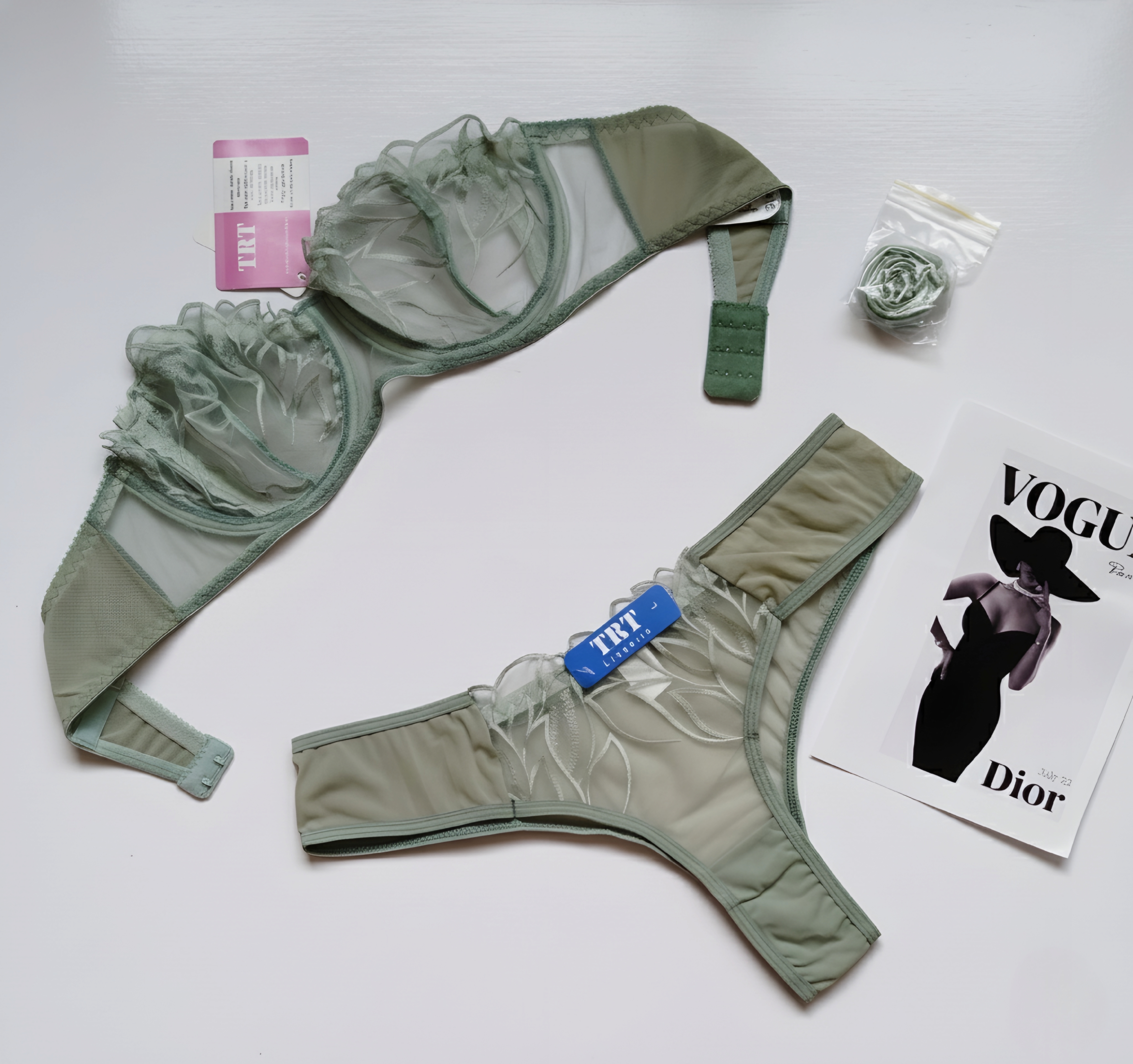 ست شورت و سوتین زنانه فانتزی طرح لارا | برند TRT | تور گاز لوکس | رنگبندی سبز ماچا