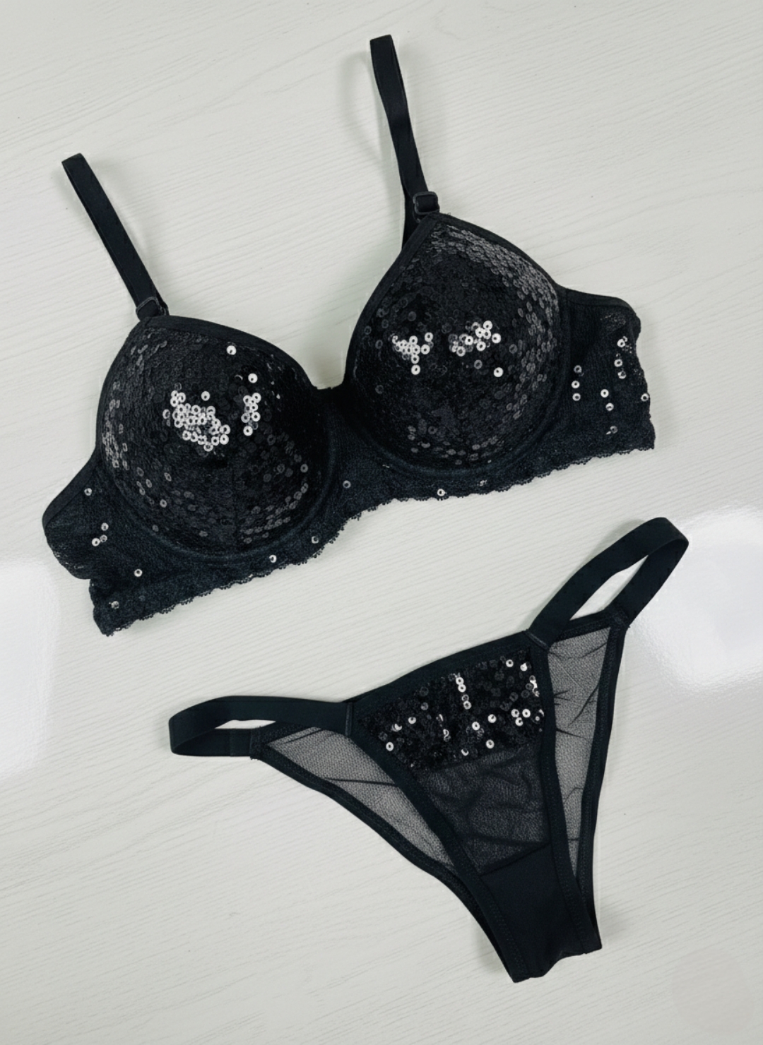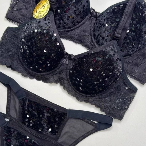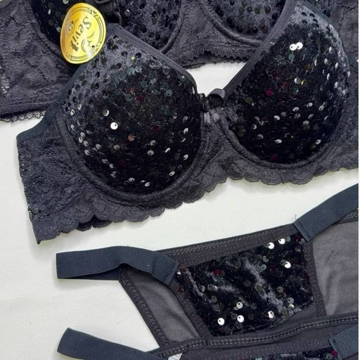 ست شورت و سوتین زنانه اسفنجی مخملی | برند sevil | طرح پولک دوزی