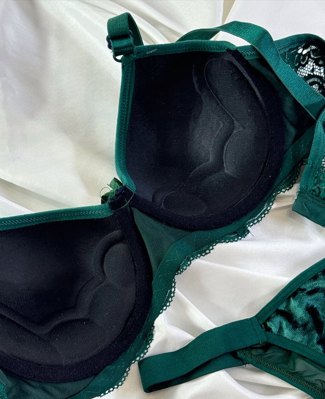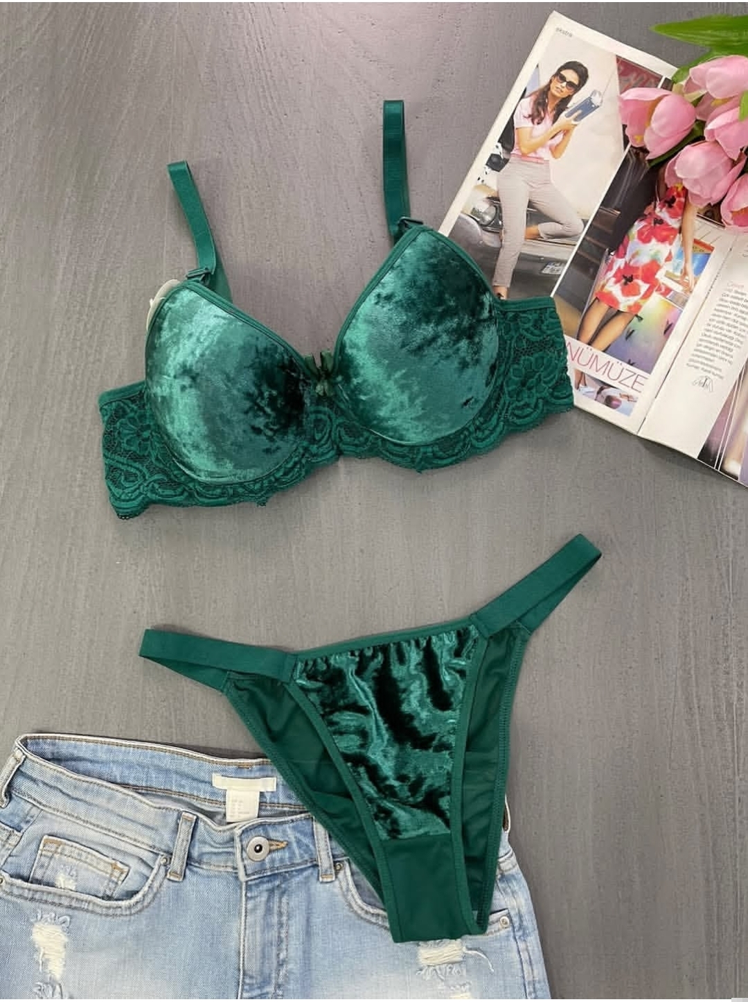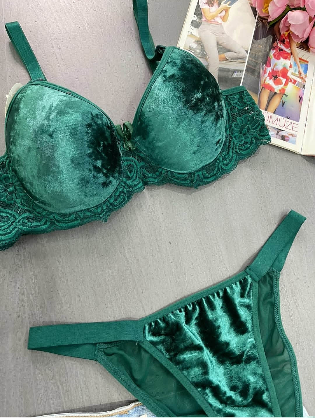 ست شورت و سوتین زنانه اسفنجی مخملی| کمر گیپور کلاسیک
