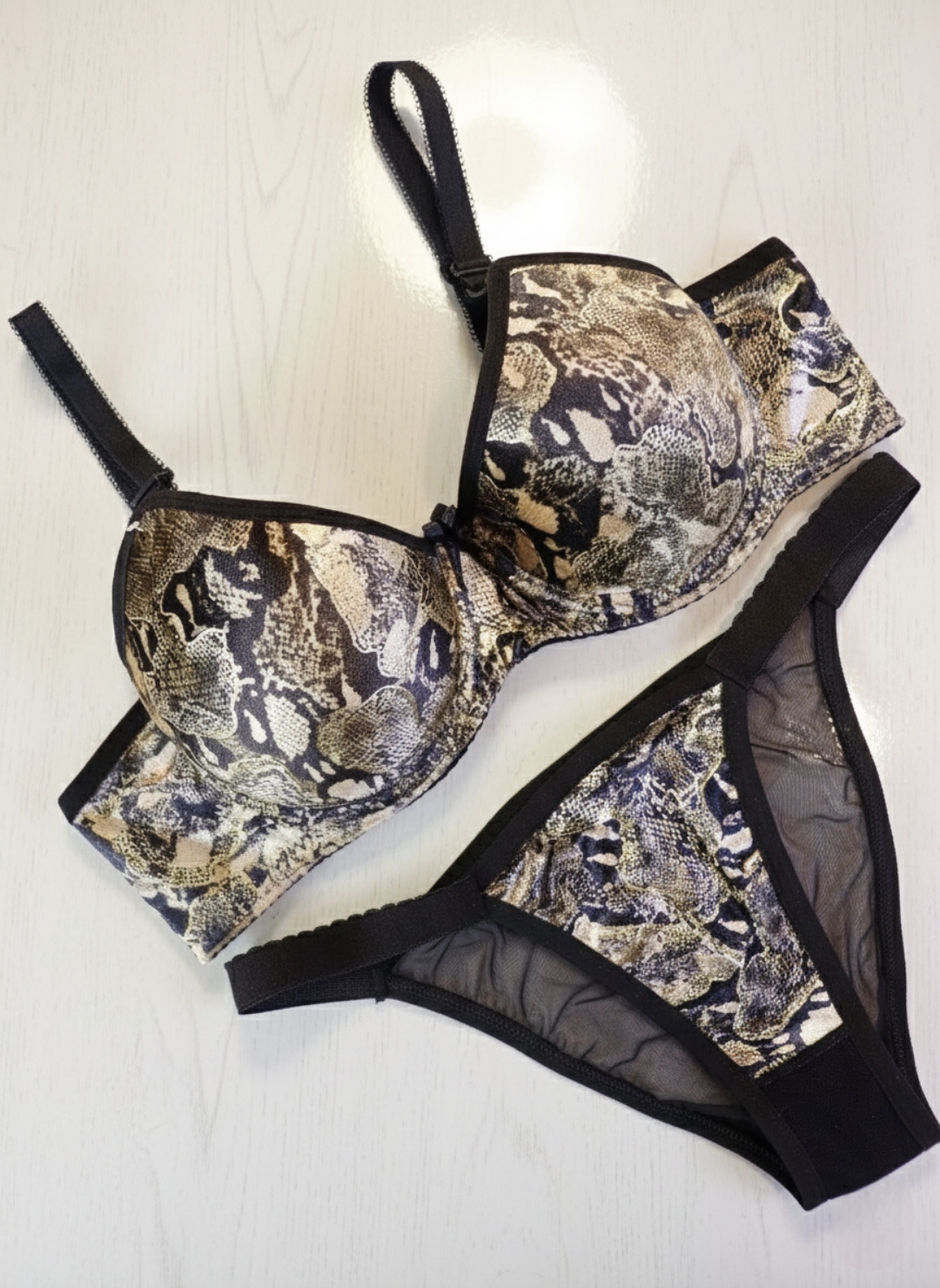 ست شورت و سوتین زنانه اسفنجی نیم جک| طرح پوست ماری ،ست اقتصادی و با کیفیت عالی برند sevil