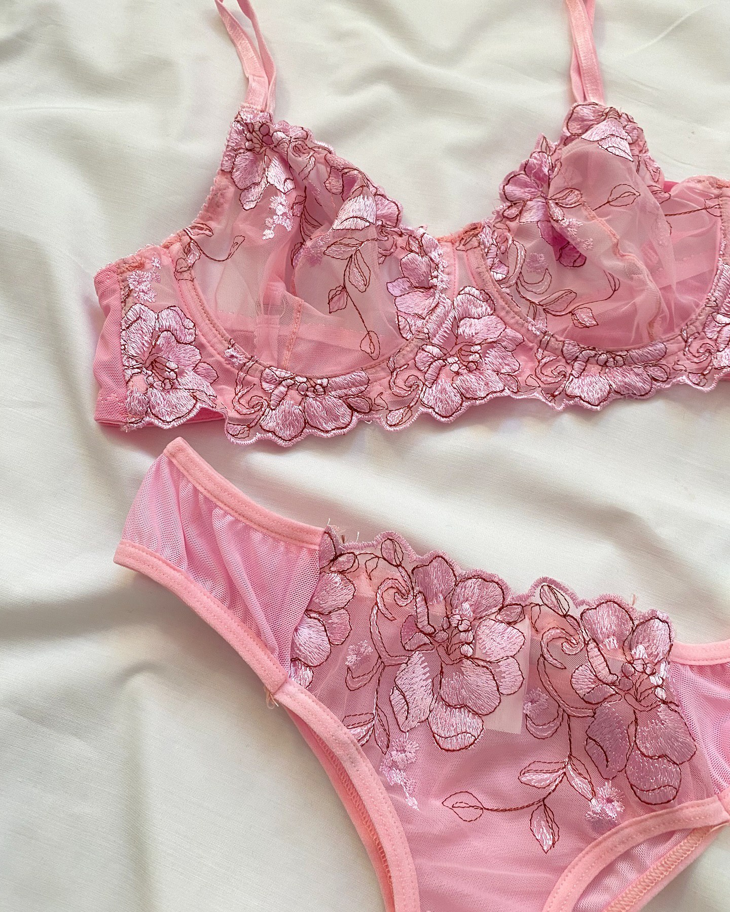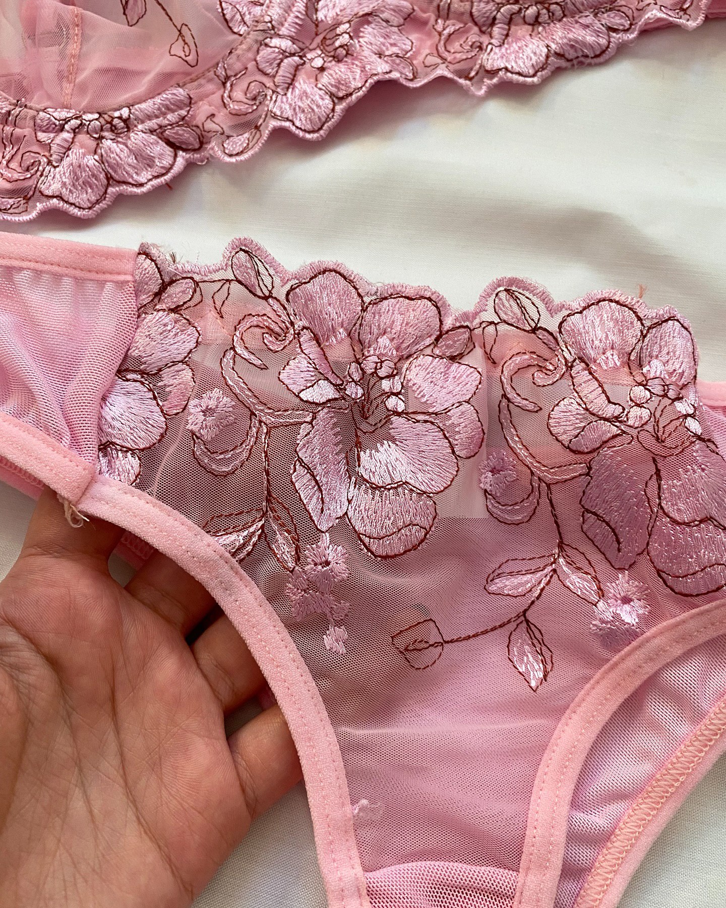 ست شورت و سوتین زنانه تور گیپوری ترک | برند TRT | طرح گلدار ژانت