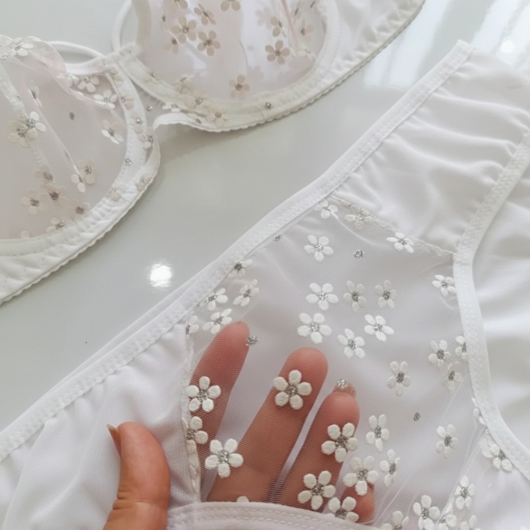 ست شورت و سوتین تور گاز طرح گل بهاری | برند regolia |ست اقتصادی با کیفیت