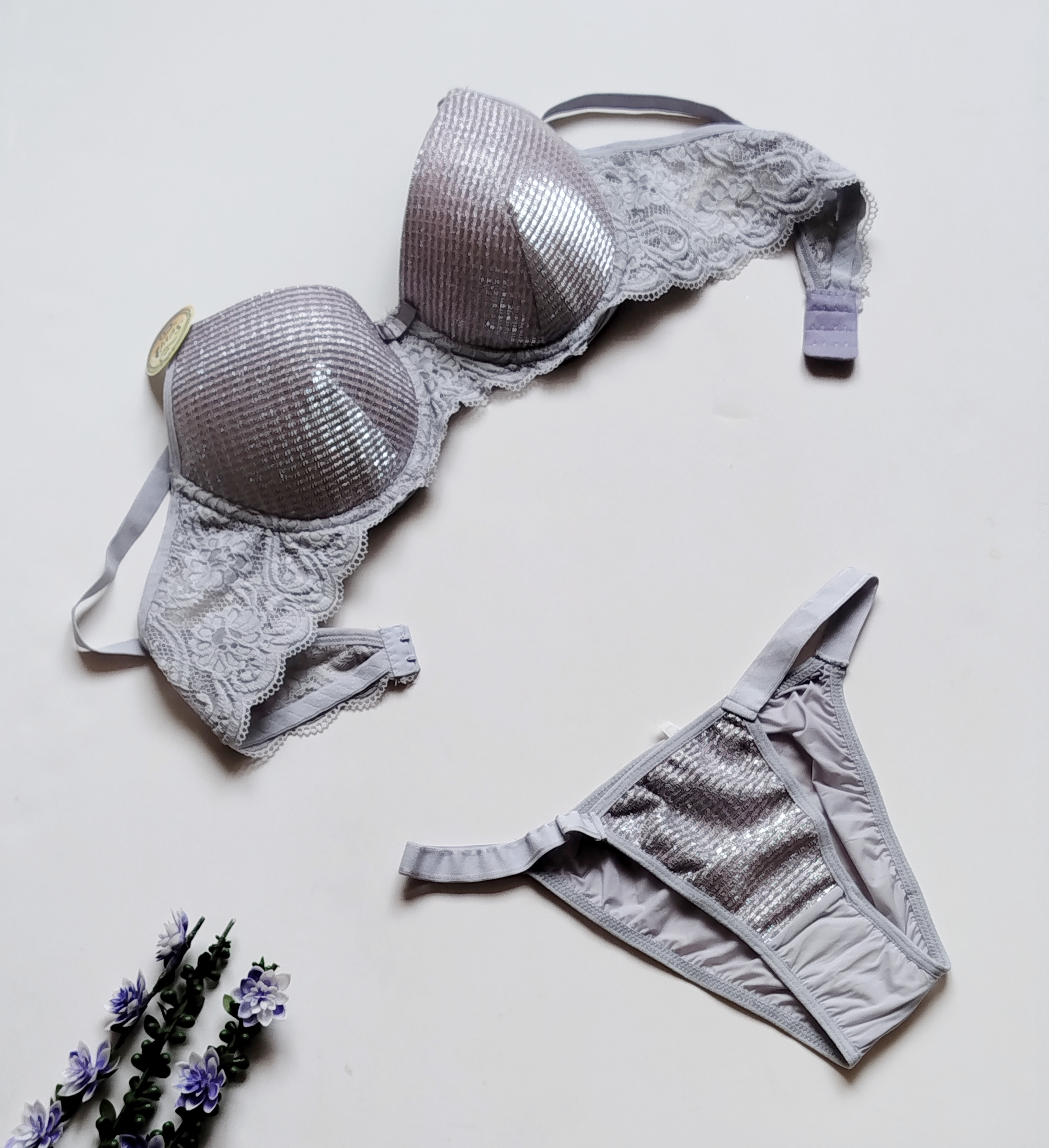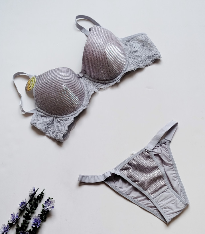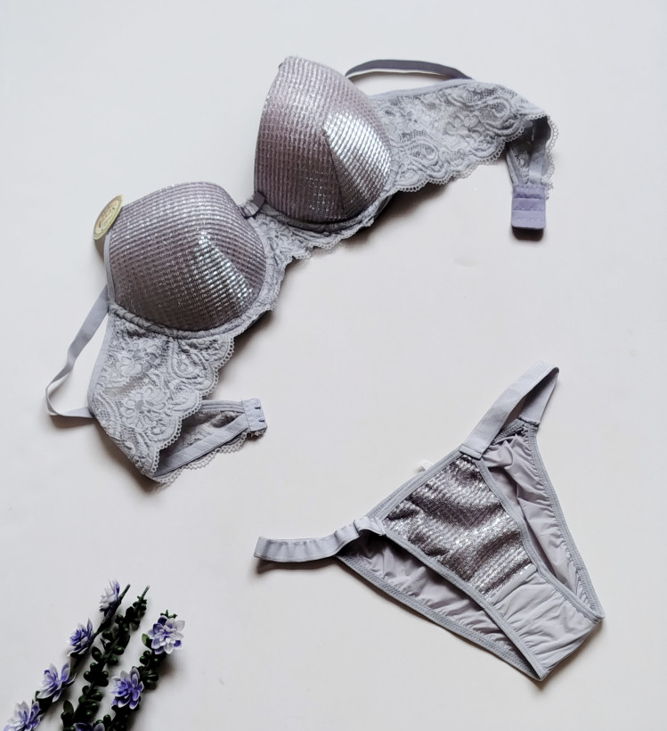 توضیحات محصول: ست شورت و سوتین زنانه اسفنجی نیم جک دار طرح کلاسیک نگین دوزی - برند Sevil**