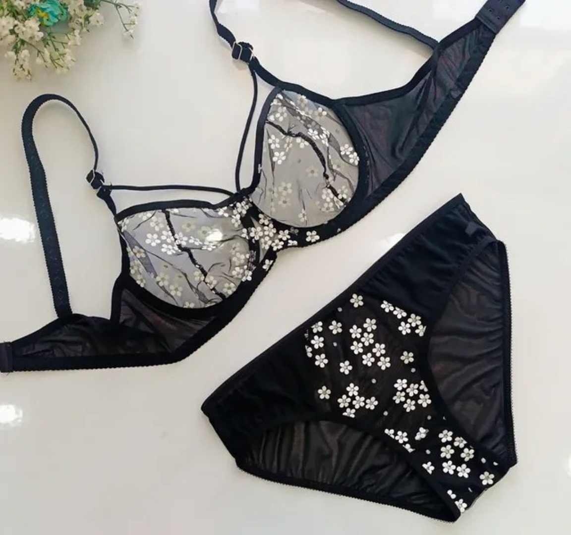 ناموجودست شورت و سوتین زنانه تور شیشه ای regolia - طرح فانتزی شکوفه بهاری| قیمت مناسب و اقتصادی