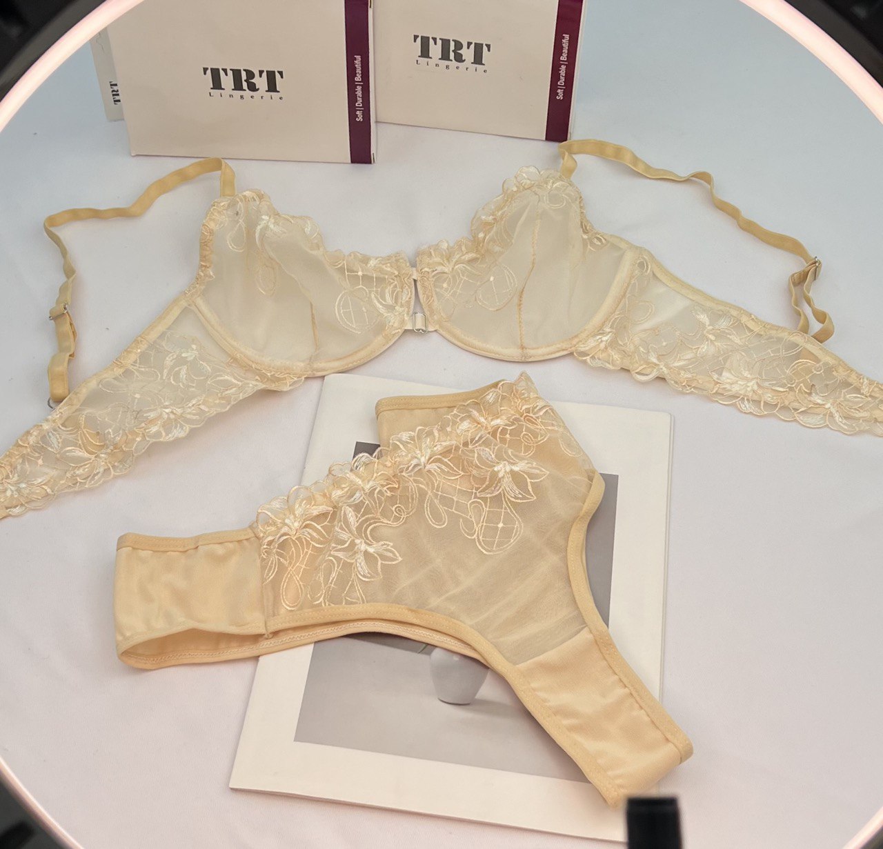 ناموجودست شورت و سوتین زنانه تور گاز گلدار گلدوزی شده برند TRT