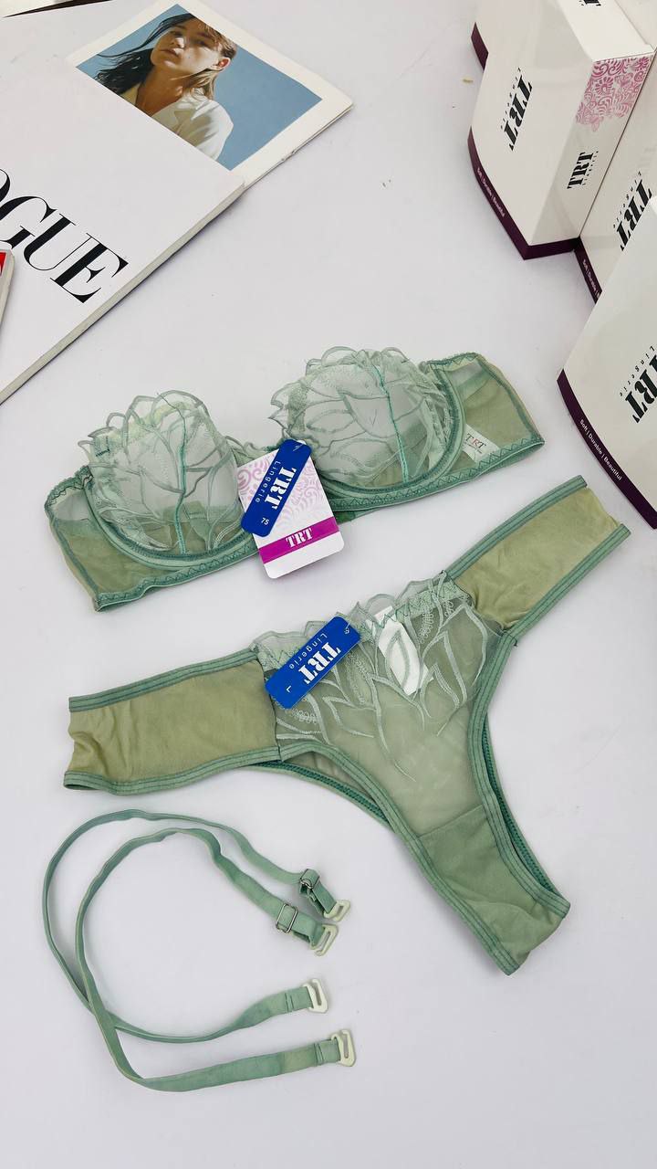 ناموجودست شورت و سوتین زنانه فانتزی طرح لارا | برند TRT | تور گاز لوکس | رنگبندی سبز ماچا